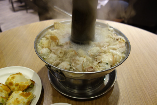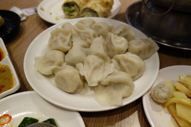 上菜速度非常快,水餃跟捲餅先上,接著就上酸菜鍋...